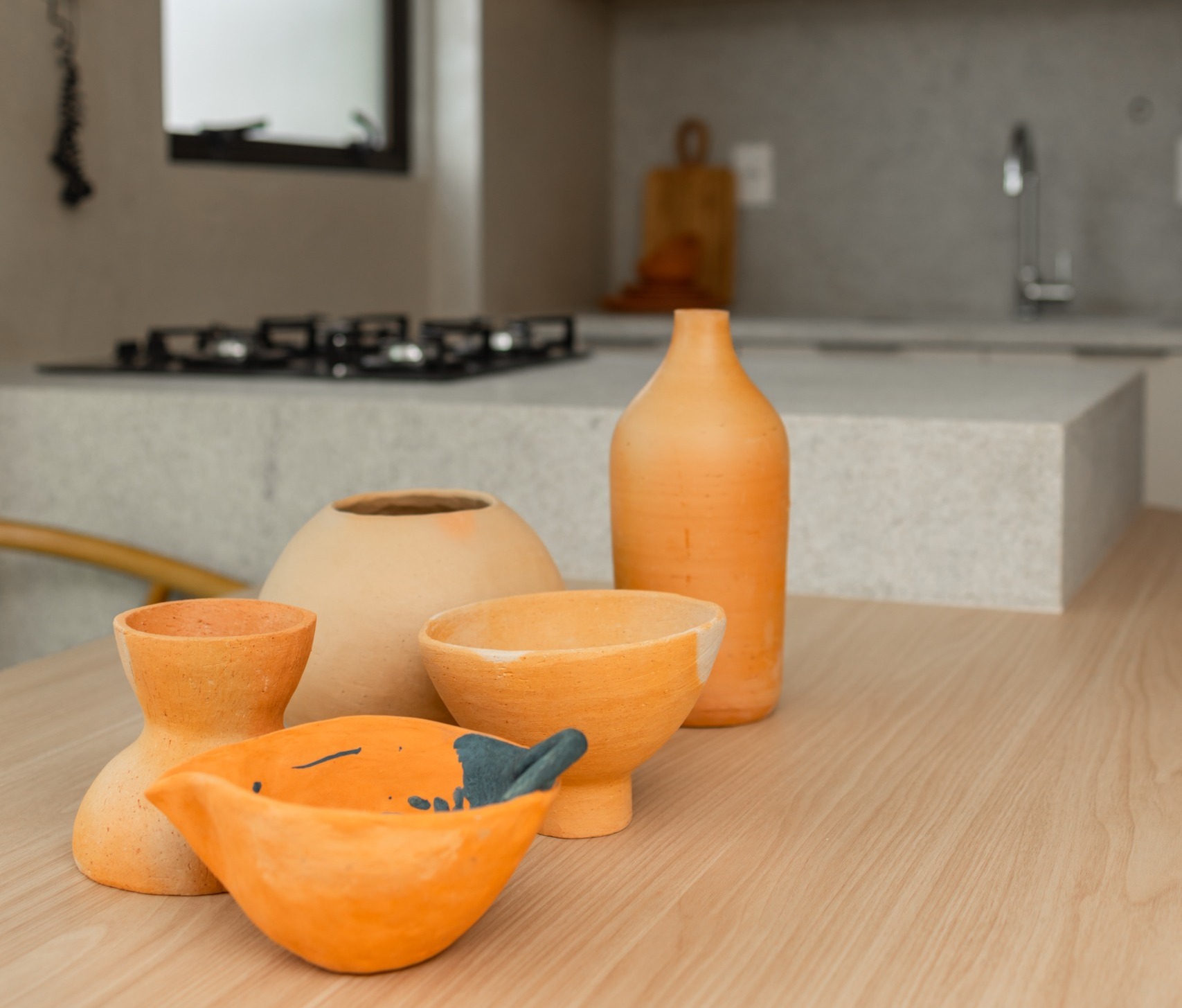 Para aquecer o ambiente, os tons de terracota e ocre, que remetem diretamente às cerâmicas das olarias tradicionais, trazem uma sensação de acolhimento orgânico. Além disso, o verde-alga profundo aparece como uma aposta forte para criar paredes de destaque que conectam o interior à paisagem costeira de Santa Catarina.