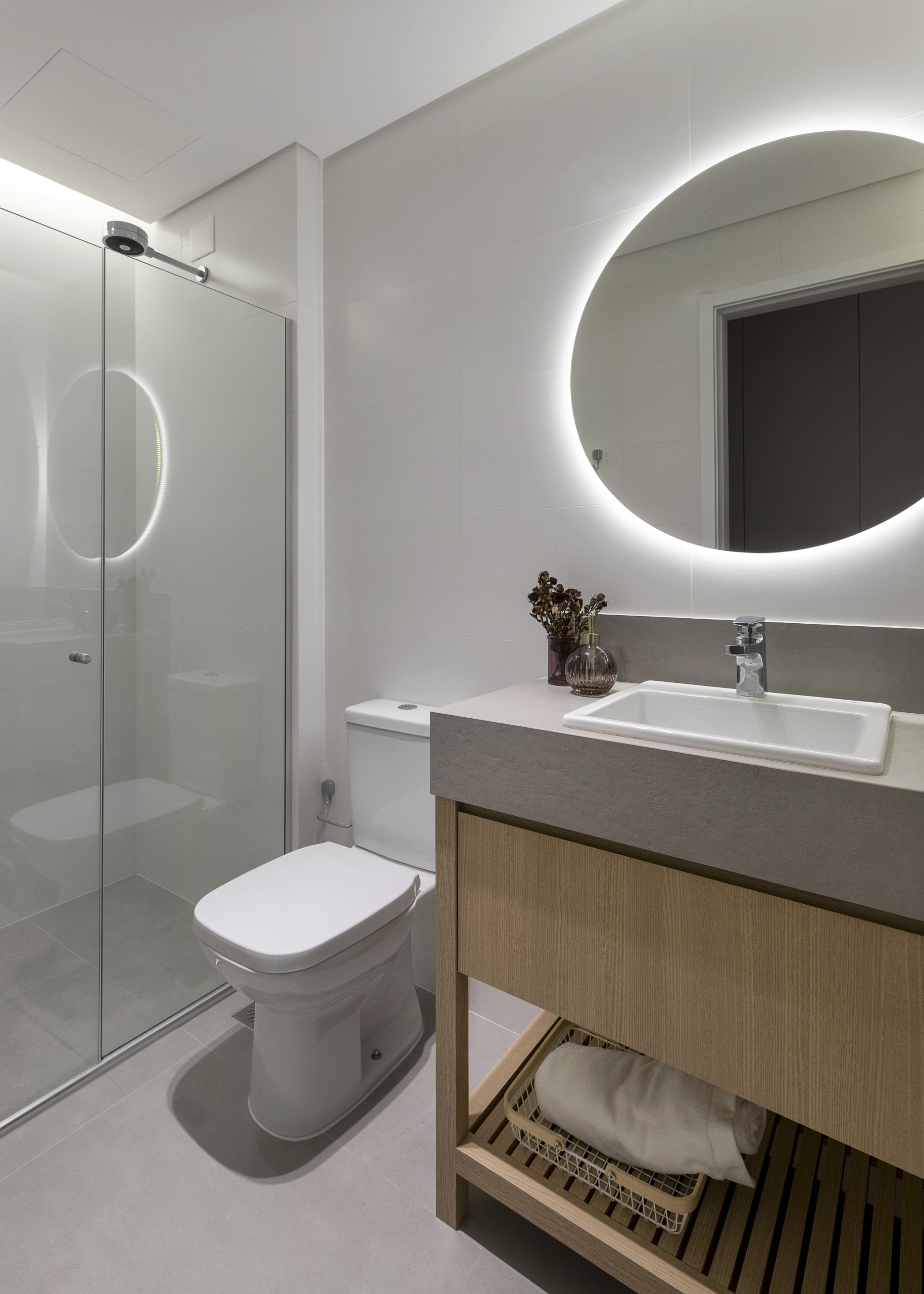 - Banheiros: um espelho grande acima da pia é essencial para a rotina de cuidados pessoais e pode ampliar visualmente o ambiente.