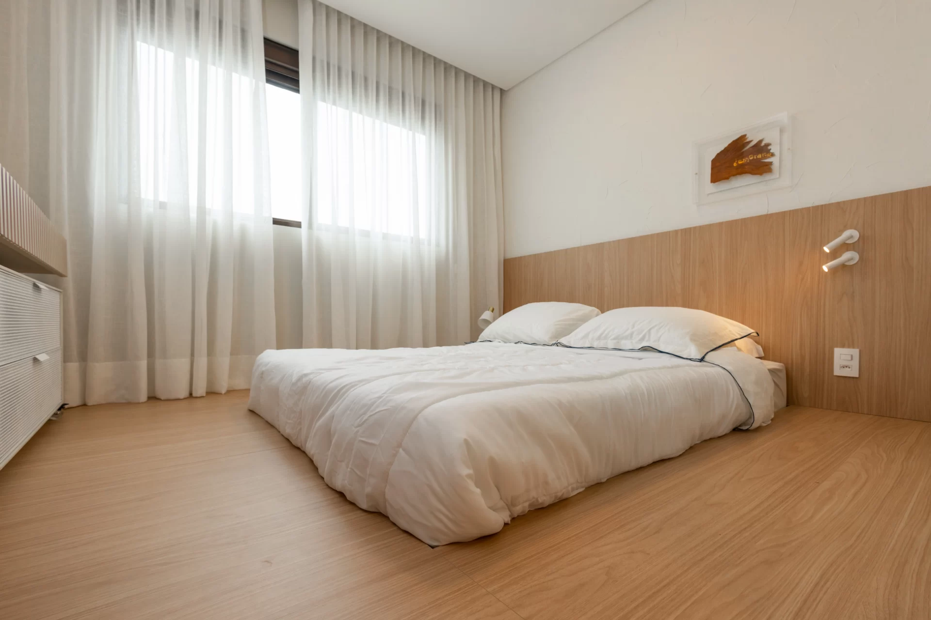 A luz natural desempenha um papel fundamental na estética minimalista. Janelas amplas, cortinas translúcidas e a disposição estratégica das entradas de luz contribui para criar uma atmosfera leve e arejada.