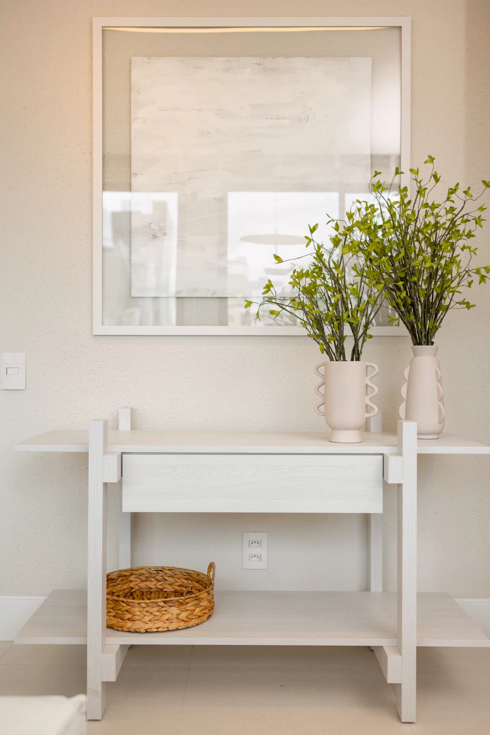 O uso de linhas retas é outra característica marcante. Formas geométricas simples, especialmente as linhas retas, guiam a seleção de móveis e elementos da decoração. Embora outras formas, como espelhos e mesas circulares, não sejam proibidas, elas devem ser usadas com parcimônia para não dominar o ambiente.