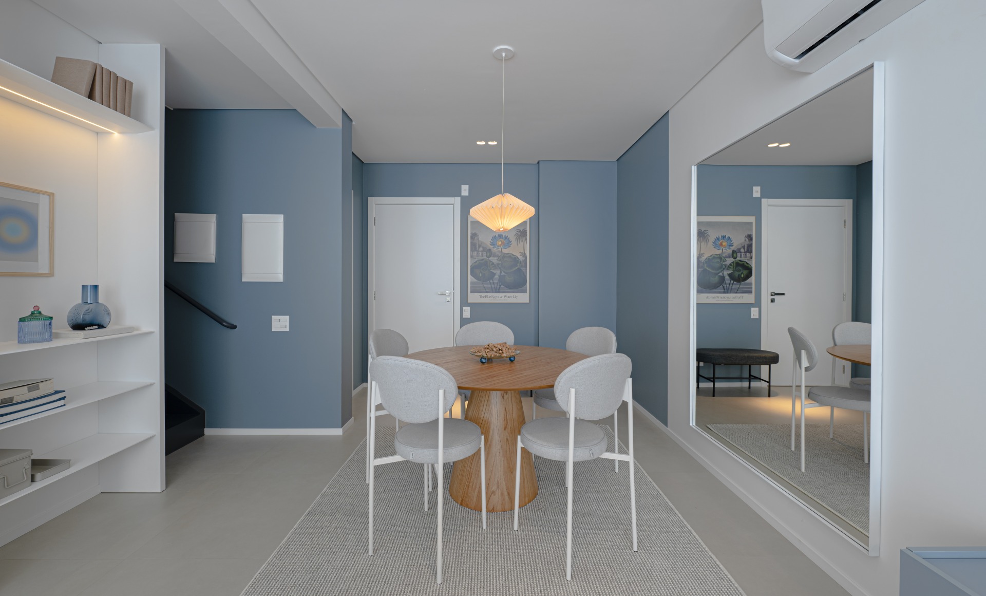 Espelho Cristalino (Alceu Valença): apartamentos com detalhes brilhantes e reflexivos, criando uma sensação de amplitude e luminosidade.
