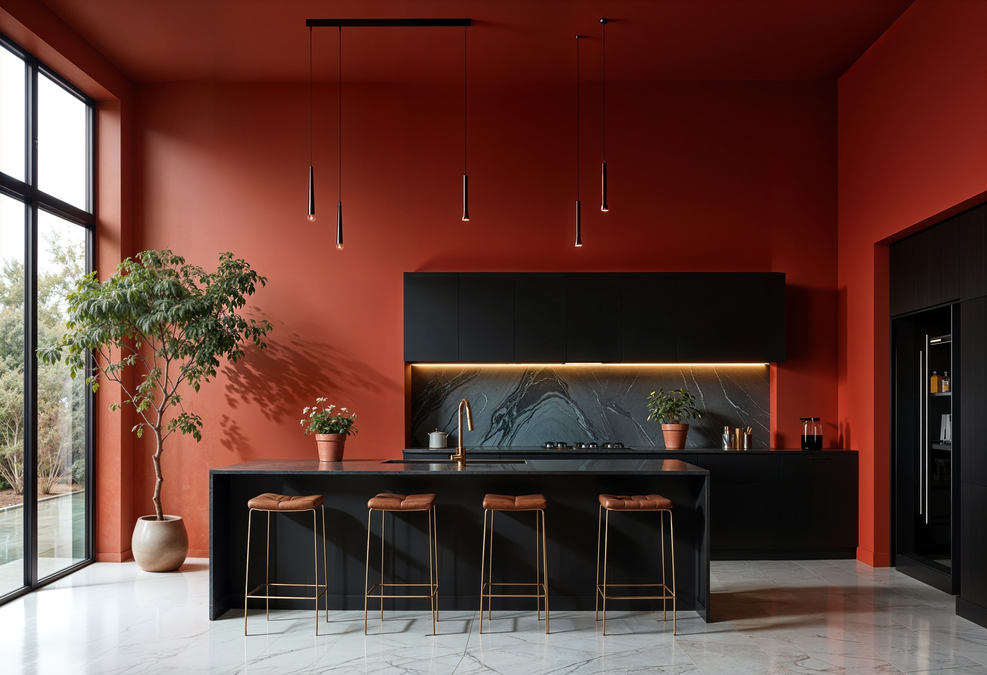 Os tons vermelhos que remetem à terra, como vinho, ameixa e beterraba, continuam em alta. Ricos e reconfortantes, estes tons (como o Vermelho-Bronze da Little Greene) são ideais para uma atmosfera restauradora, oferecendo uma alternativa sofisticada aos marrons tradicionais e combinando perfeitamente com materiais naturais.