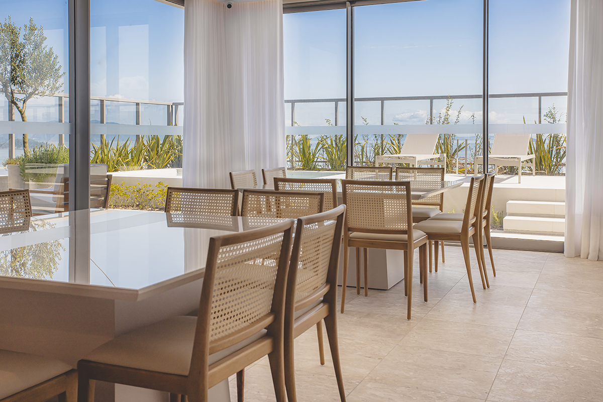 Este apartamento de 2 quartos, sendo 1 suítes, oferece conforto e privacidade. Com 2 banheiros, incluindo lavabo, é bem iluminado, arejado e conta com janelas piso-teto que valorizam a luz natural. Como destaque principal, uma vista mar de tirar o folego!