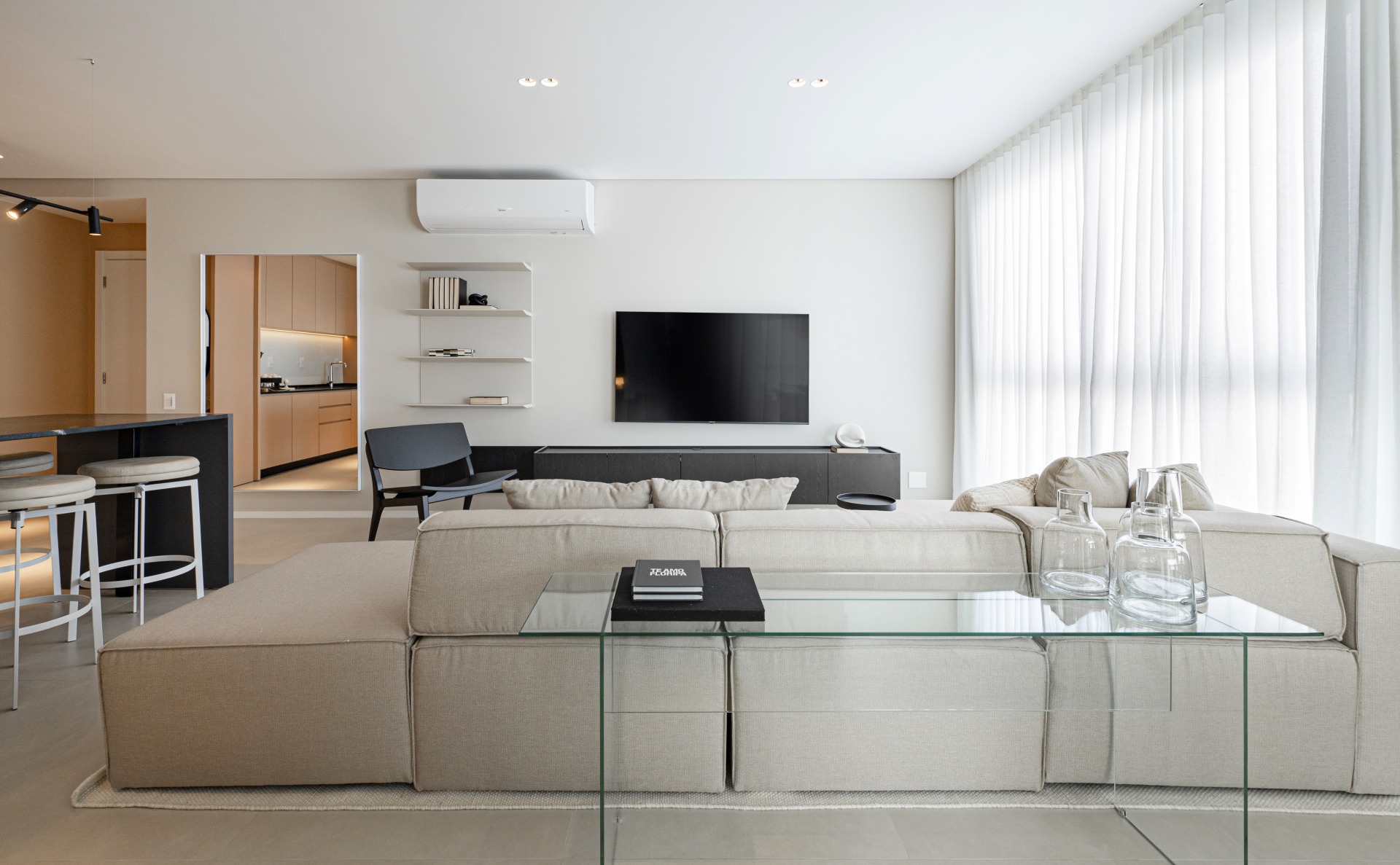CALMÔ (Liniker & Caramelows): ambientes modernos e minimalistas, com um toque onírico que convida à contemplação e ao relaxamento.